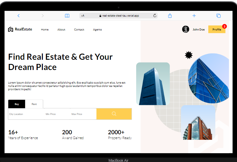 A clean and minimal real estate UI showcasing property listings with a modern touch. Built using Next.js and styled with Tailwind CSS, featuring property cards, search filters, and detailed property views